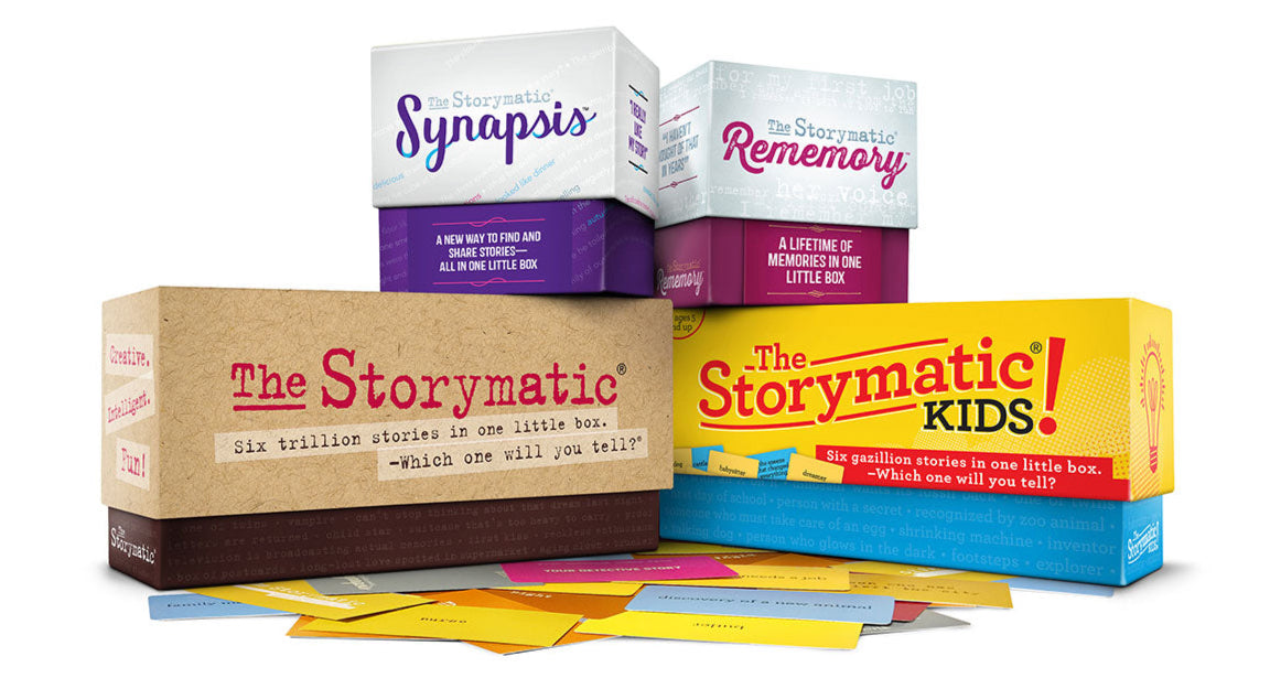 There are a few Storymatics to choose from: The Storymatic Classic, Storymatic Kids, Rememory, and Synapsis.
